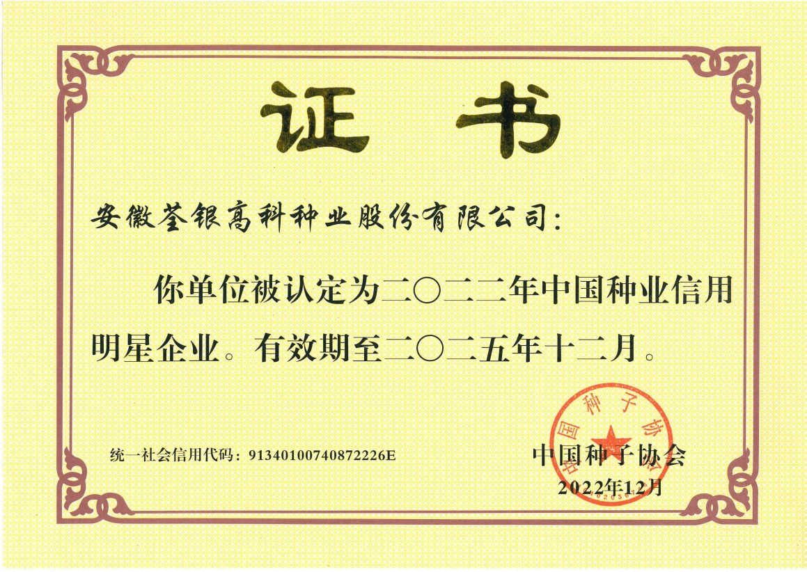 安徽荃銀高科種業股份有限公司是一家“以種業為核心、農業服務為延伸、探索和創新農業多元化發展”的現代高科技種業上市公司,證券代碼:300087。公司注冊資金9.47億元,系“中國種業領軍企業、農業產業化國家重點龍頭企業、國家高新技術企業、農業部首批農作物種子育繁推一體化企業、中國種業信用明星企業"。在國內控股子公司20多家,在國外設立分支機構4家,良種銷售至全國20多個?。ㄊ小^),出口覆蓋20多個國家與地區,種業綜合實力、雜交水稻研發、推廣及海外業務規模均居全國種子企業前2位。